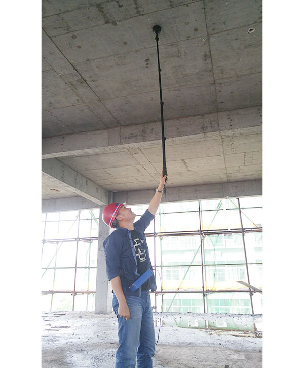 上饒市職業(yè)中學宿舍樓D樓建設項目位于上饒市信州區(qū)志敏大道,由上饒市信州區(qū)區(qū)委區(qū)政府籌資興建,為現(xiàn)澆筑框架結構。根據(jù)結構的特點,公司采用回彈法檢測混凝土強度、采用掃描法檢測鋼筋保護層厚度和樓板厚度。